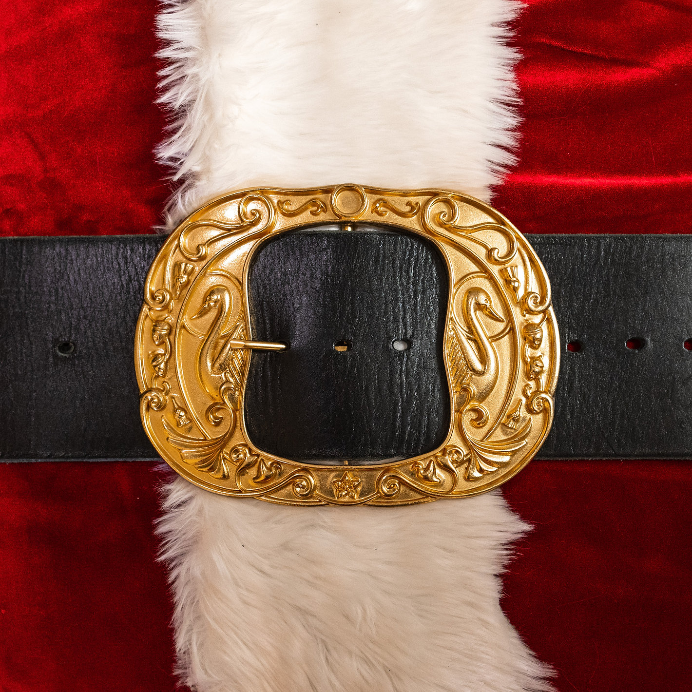 One of the issues facing many Santa performers today is the weight of buckles. A heavy buckle can drag down the belt below the cookie zone, which creates an unflattering and unprofessional look. This buckle comes in at around 11.6 oz and is curved to accommodate the cookie zone.